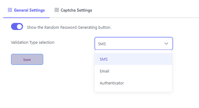 it sets which 2FA verification type should appear as default for all users on the login screen. Users can customize this area for themselves. Users can customize this setting with [Validation Type](https://docs.arksspr.com/master/administration/my-account/validation-type) under My Account.