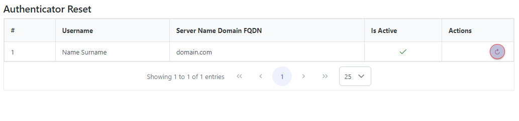 Users who are members of the Administrators role can reset the user Authenticator QR code via this screen. In this way, the user can configure the 2FA application again.